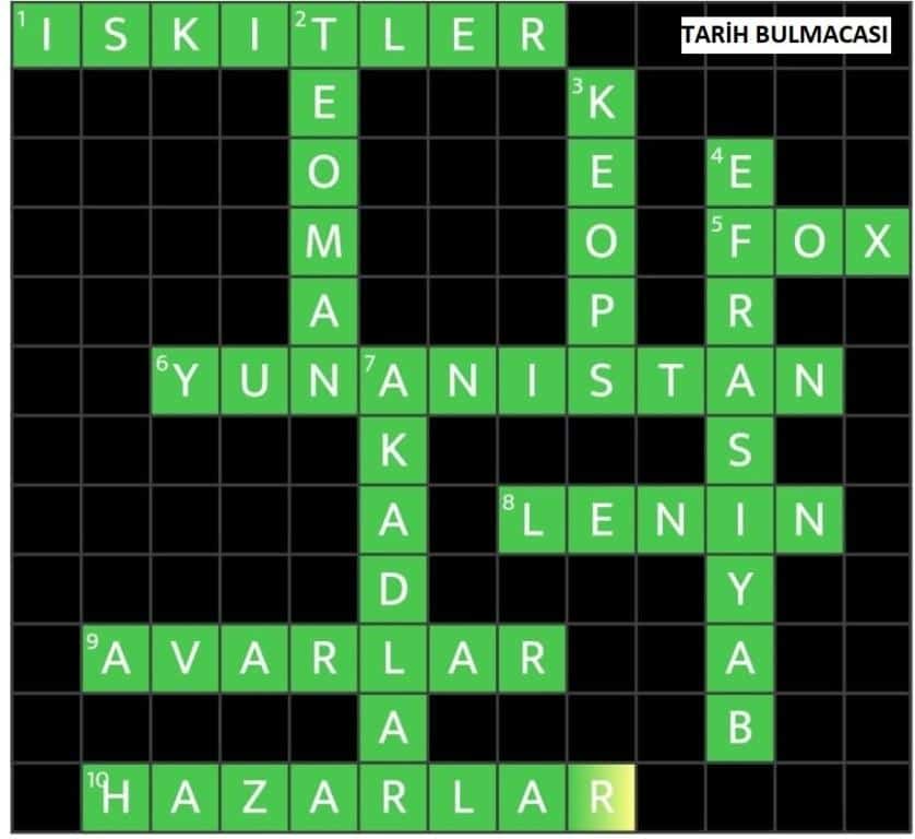 Okulumuzun Dergisi Kaşgarname'nin Bulmaca Cevapları